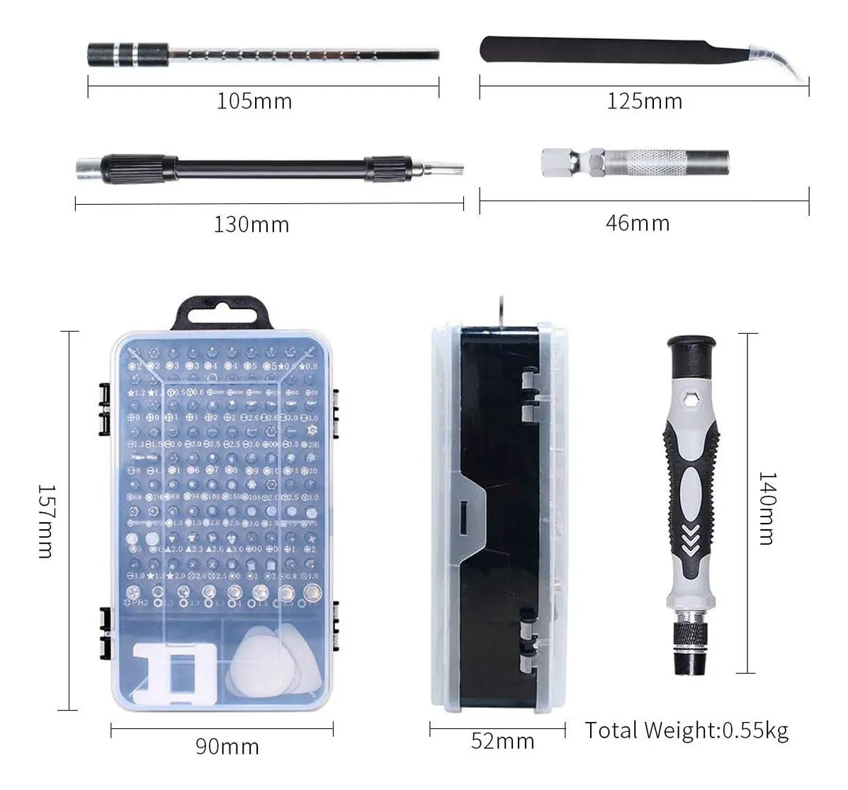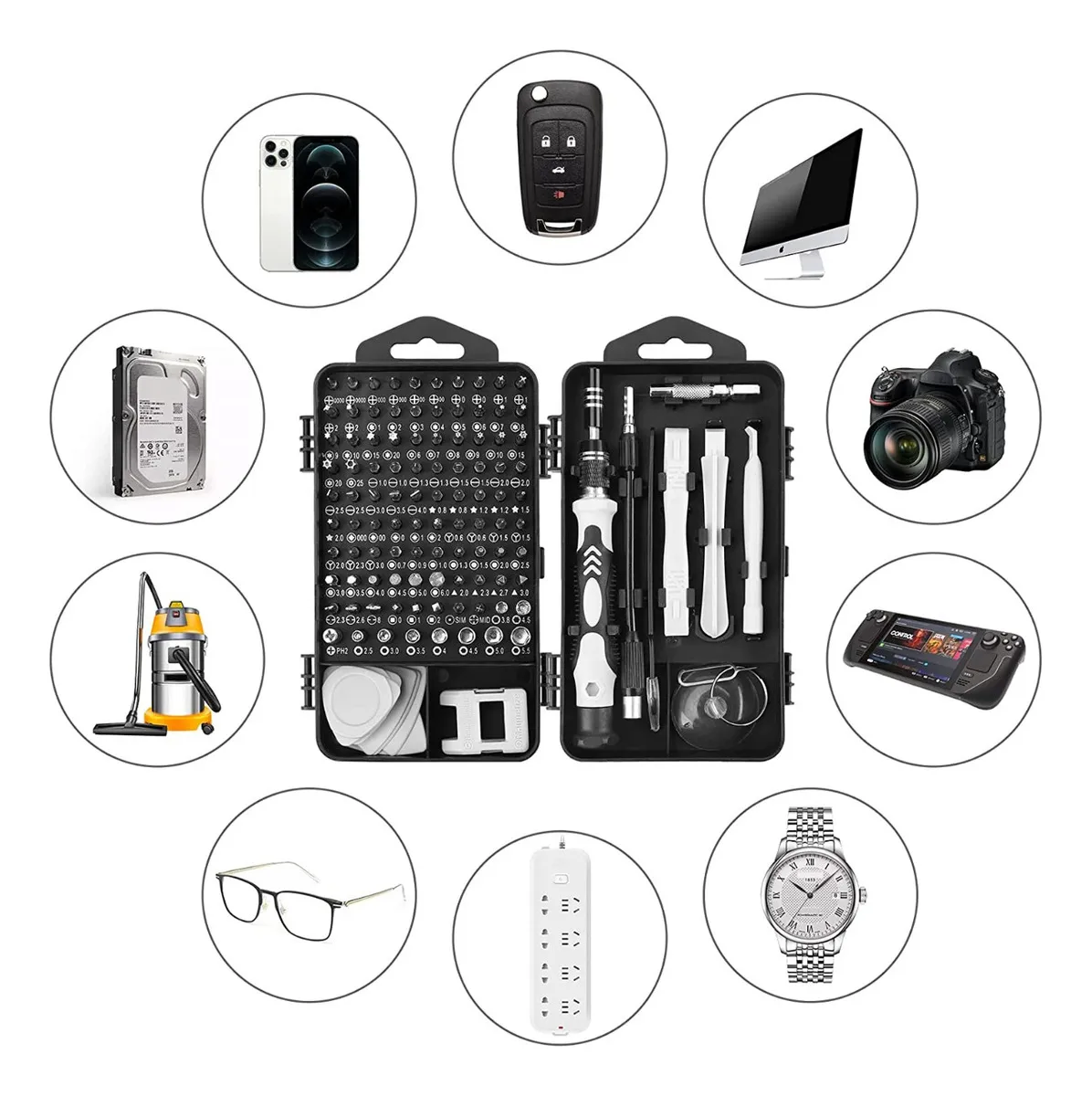• Kit de reparación de 116 piezas para celulares, ideal para profesionales y aficionados.