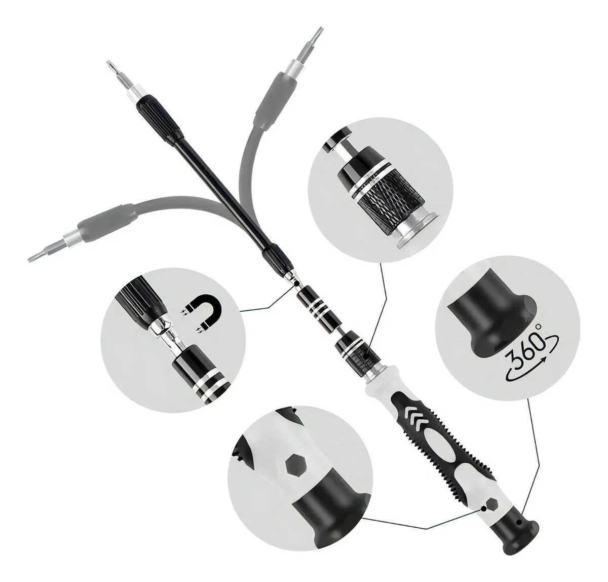 * Modelos de Destornilladores Incluídos: Phillips, Slit, Torx, Torx con el agujero, Hexágono,